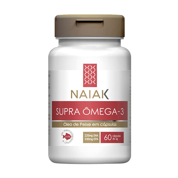 O Supra Ômega 3, da Naiak, é um suplemento feito com óleo de peixe. Sua composição é rica em ômega-3 fornecendo 220 mg de DHA e 330 mg de EPA por cápsula. Não contém metais pesados como o mercúrio e o chumbo.