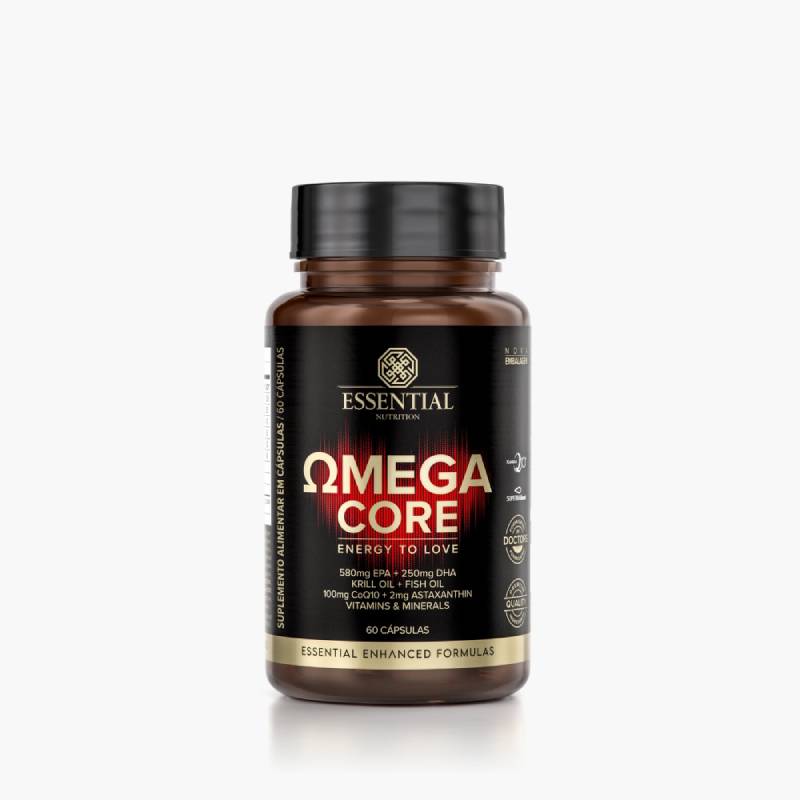 <p><span>O <strong>Ômega Core da Essential Nutrition</strong> é suplemento alimentar de ômega 3 que combina o óleo de peixe com o óleo de krill, possui alta concentração de EPA, astaxantina, coenzima Q10 e vitaminas e minerais selecionados.</span></p> <h2><b>Sugestão de consumo:</b></h2> <p><span>Ingerir uma cápsula duas vezes ao dia, com as principais refeições, ou conforme orientação de médico ou nutricionista</span><span>.</span></p> <h2><b>Motivos para escolher o produto:</b></h2> <ul> <li aria-level="1"><span>Contém 580 mg de EPA e 250 mg de DHA;</span></li> <li aria-level="1"><span>Fonte de vitamina B2, B6, B9 e B12;</span></li> <li aria-level="1"><span>100 mg de coenzima Q10;</span></li> <li aria-level="1"><span>Contém cobre, zinco e cromo;</span></li> <li aria-level="1"><span>Livre de aromatizantes e corantes artificiais;</span></li> <li aria-level="1"><span>Sem glúten.</span></li> </ul> <h2><b>A Marca</b></h2> <p><span>A Essential Nutrition é uma marca especializada em nutrição funcional, produzindo produtos de extrema qualidade, utilizando as melhores matérias-primas e em suas concentrações ideias, excluindo o uso de ingredientes genéticamente modificados, glúten, lactose, corantes, conservantes e adoçantes artificiais.</span></p>