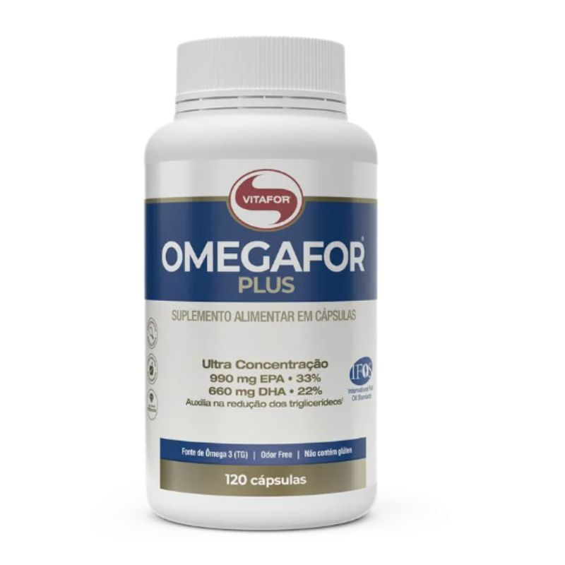 <p>O <strong>Ômegafor Plus Vitafor com 120 cápsulas</strong>, é um produto em cápsulas à base de óleo de peixe extraído de águas frias, profundas e não poluídas, sendo rico em ômega um tipo de gordura poli-insaturada, e seus derivados EPA (ácido ecosapentaenoico) e DHA (ácido docosahexaenoico), consideradas gorduras boas ao organismo e essenciais.</p> Sugestão de consumo: <p>Ingerir 1 cápsula três vezes ao dia, preferencialmente 30 minutos antes das principais refeições.</p> Motivos para escolher o produto: <ul> <li> <p>Oferece 990mg de EPA e 660mg de DHA</p> </li> <li> <p>Isento de metais pesados</p> </li> <li> <p>É analisado e certificado pelo IFOS (International Fish Oils Standards)</p> </li> </ul> Sobre a marca: <p>A Vitafor é uma marca brasileira de suplementos alimentares com padrão de alta qualidade e eficácia, que valoriza o desenvolvimento sustentável, incorporando esse conceito a suas operações diárias. Os resíduos da fabricação dos produtos são mínimos, as embalagens utilizadas em todo o processo são recicladas e seus produtos são atóxicos, beneficiando a sua saúde e cuidando da natureza e do meio ambiente em parceria com a comunidade.</p>
