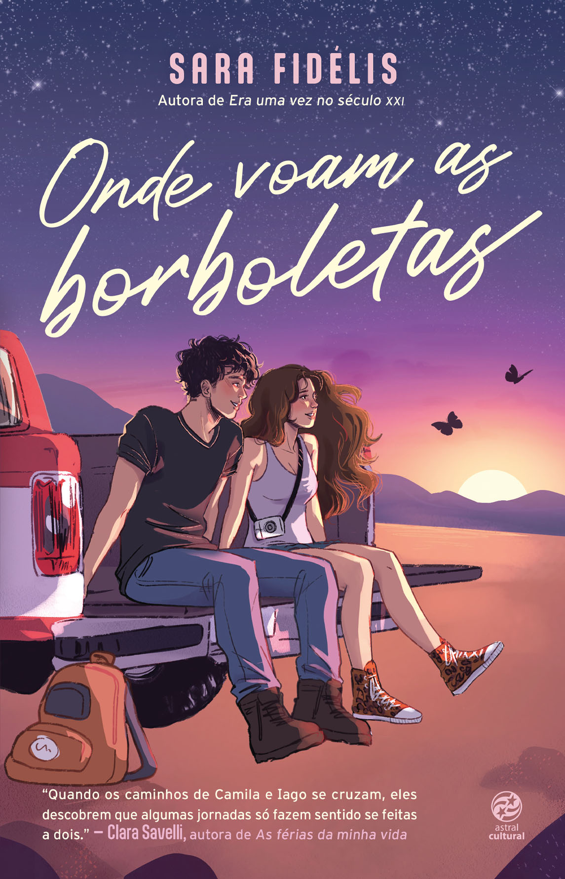 “Sara Fidélis nos conduz em uma viagem tão leve quanto o bater de asas de uma borboleta e cujo destino final só pode ser um: o amor de que desfrutamos quando aceitamos correr riscos em nome dos nossos sonhos.” — Aione Simões, autora de Escrito nas estrelas? “Quando os caminhos de Camila e Iago se cruzam, eles descobrem que algumas jornadas só fazem sentido se feitas a dois.” – Clara Savelli, autora de As férias da minha vida UMA SIMPLES — E DELICIOSA — MUDANÇA DE RUMO PODE ALTERAR TODO O SEU DESTINO. Enfrentando o luto, Camila cai na estrada com sua câmera, uma mochila nas costas e o objetivo de realizar o último desejo da mãe, uma bióloga apaixonada por borboletas que, em seus momentos finais, pediu à filha que visitasse os lugares com os quais as duas sonhavam. A garota só não esperava que seu caminho cruzasse com o de um lindo e irritante ladrão de pastéis. Iago tem um plano. Ele está de férias e, na companhia de seu cachorro Alfredo, pretende rodar o país em sua caminhonete, aventurando-se em algo fora de sua zona de conforto. Uma briga por comida coloca Camila e Iago no caminho um do outro, e os dois se veem forçados a viajar juntos, embarcando em uma viagem por vários estados do Brasil. Em meio a discussões acaloradas, segredos, paisagens belíssimas, fotos incríveis e uma paixão repentina, os dois vão descobrir o verdadeiro significado do efeito borboleta.