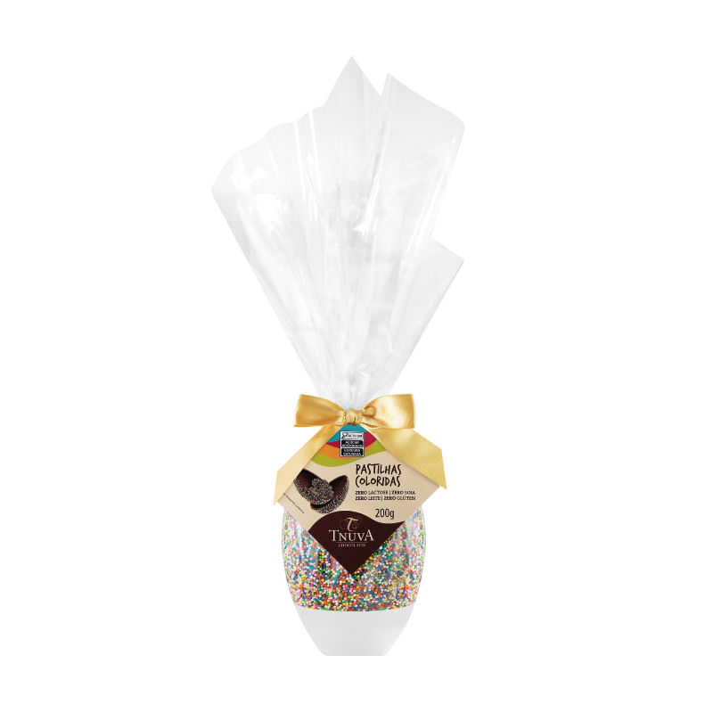 <p>O <strong>Ovo de Páscoa Chocolate com Pastilhas Coloridas Tnuva, </strong>contém duas bandas de ovo, elaborado com ingredientes cuidadosamente selecionados que quando acrescidos junto ao cacau com adição de miçangas coloridas resultam em um produto colorido e delicioso. Feitos com o mais puro cacau (liquor de cacau). Perfeito para consumo em qualquer momento, atendendo às necessidades de um amplo público. </p> <h2><strong>Sugestão de consumo:</strong></h2> <p>Consuma uma porção. Ideal para ser consumido como sobremesa e em lanches intermediários com moderação e para compartilhar com familiares. </p> <h2><strong>Motivos para escolher o produto:</strong></h2> <ul> <li> <p>Ovo de Páscoa vegano; </p> </li> <li> <p>Livre de glúten, soja, leite e proteínas do leite; </p> </li> <li> <p>Zero ingredientes de origem animal; </p> </li> <li> <p>Kosher; </p> </li> <li> <p>Isento de conservantes artificiais; </p> </li> <li> <p>Sem gorduras trans. </p> </li> </ul> <h2><strong>A Marca</strong></h2> <p>Fundada em 1989, a <strong>Tnuva</strong> é pioneira no Brasil na produção exclusiva de chocolates sem leite ou qualquer ingrediente de origem animal, oferecendo uma experiência deliciosa, segura e acessível para pessoas com alergia, intolerância ou restrição ao leite, além do público vegano. Nossa dedicação à qualidade começa na seleção e processamento da própria matéria-prima, garantindo um chocolate puro, equilibrado e saboroso. Certificados pela rigorosa supervisão Kosher da BKA, asseguramos um padrão internacional de excelência. Com distribuição nacional, atendemos desde consumidores finais até o setor industrial, sempre comprometidos em proporcionar prazer e segurança em cada pedaço de chocolate.</p>