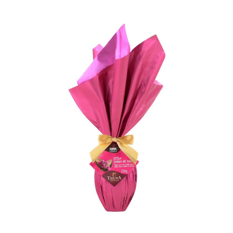 <p>O <strong>Ovo de Páscoa Chocolate estilo Sonho de Valsa Tnuva, </strong>contém duas bandas de ovo, elaborado com ingredientes cuidadosamente selecionados que quando acrescidos junto ao cacau, adicionados de castanhas de caju, resultam em um produto delicioso e com saborosos bombons. Feitos com o mais puro cacau (liquor de cacau). Perfeito para consumo em qualquer momento, atendendo às necessidades de um amplo público. </p> <h2><strong>Sugestão de consumo:</strong></h2> <p>Consuma uma porção. Ideal para ser consumido como sobremesa e em lanches intermediários com moderação e para compartilhar com familiares. </p> <h2><strong>Motivos para escolher o produto:</strong></h2> <ul> <li> <p>Ovo de Páscoa vegano; </p> </li> <li> <p>Livre de glúten, soja, leite e proteínas do leite; </p> </li> <li> <p>Zero ingredientes de origem animal; </p> </li> <li> <p>Kosher; </p> </li> <li> <p>Isento de corantes e conservantes artificiais; </p> </li> <li> <p>Sem gorduras trans. </p> </li> </ul> <h2><strong>A Marca</strong></h2> <p>Fundada em 1989, a <strong>Tnuva</strong> é pioneira no Brasil na produção exclusiva de chocolates sem leite ou qualquer ingrediente de origem animal, oferecendo uma experiência deliciosa, segura e acessível para pessoas com alergia, intolerância ou restrição ao leite, além do público vegano. Nossa dedicação à qualidade começa na seleção e processamento da própria matéria-prima, garantindo um chocolate puro, equilibrado e saboroso. Certificados pela rigorosa supervisão Kosher da BKA, asseguramos um padrão internacional de excelência. Com distribuição nacional, atendemos desde consumidores finais até o setor industrial, sempre comprometidos em proporcionar prazer e segurança em cada pedaço de chocolate.</p> <p> </p>