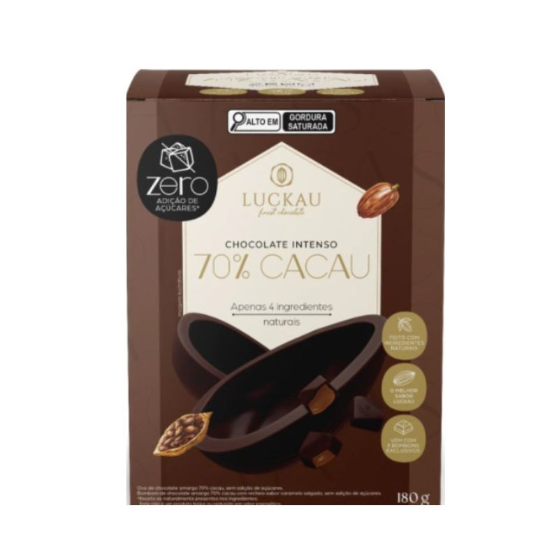 <h2 style="text-align: justify;"><strong>Ovo De Páscoa Choco Intenso 70% Luckau 180g</strong></h2> <p style="text-align: justify;">O <strong>Ovo de Páscoa sabor chocolate intenso 70% cacau Luckau, </strong>contém duas bandas de ovo, elaborado com apenas 4 ingredientes naturais e sem adição de açúcares, sendo o cacau da Amazônia o principal ingrediente, o que traz uma intensidade de sabor delicioso e uma cremosidade na medida certa.</p> <h2 style="text-align: justify;"><strong>Sobre os ingredientes: </strong></h2> <p style="text-align: justify;"><strong>Cacau</strong>: é rico em antioxidantes, fibras e fonte de magnésio e de triptofano.</p> <h2 style="text-align: justify;"><strong>Sugestão de consumo:</strong></h2> <p style="text-align: justify;">Consuma uma porção. Pode ser consumido como sobremesa e em lanches intermediários com moderação.</p> <h2 style="text-align: justify;"><strong>Motivos para escolher o produto:</strong></h2> <p style="text-align: justify;">● Contém apenas 4 ingredientes; </p> <p style="text-align: justify;">● Elaborado com 70% cacau;</p> <p style="text-align: justify;">● Sem adoçantes artificiais;</p> <p style="text-align: justify;">● Sem adição de açúcar;</p> <p style="text-align: justify;">● Elaborado com ingredientes naturais.</p> <h2 style="text-align: justify;"><strong>A Marca</strong></h2> <p style="text-align: justify;">Luckau é uma empresa especializada na produção de chocolates finos e funcionais. Tem Linha Belga e a Linha Vegana, e todos os produtos feitos pensando em proporcionar uma experiência saudável e única. Apaixonados por chocolates e que querem manter uma rotina saudável, a Luckau foi desenvolvida exatamente é para você! Com <strong>produtos ZERO açúcar! A missão</strong> é trazer qualidade e sabor para a vida.</p> <p style="text-align: justify;"> </p>