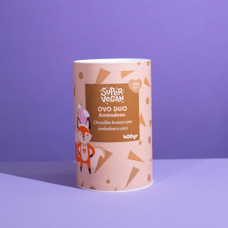 <h2 style="text-align: justify;"><strong>Ovo de Páscoa Duo Amêndoas 400g</strong></h2> <p style="text-align: justify;">O <strong>ovo de Páscoa </strong>sabor Duo Amêndoas <strong>Super Vegan </strong>é elaborado com uma camada de chocolate branco com amêndoas e outra camada de chocolate branco com leite de coco, totalmente vegano, aliando sabor e cremosidade. </p> <h2 style="text-align: justify;"><strong>Sugestão de consumo:</strong></h2> <p style="text-align: justify;">Consuma uma porção. Ideal para ser consumido em lanches intermediários com moderação e para compartilhar com familiares.</p> <h2 style="text-align: justify;"><strong>Motivos para escolher o produto:</strong></h2> <p style="text-align: justify;">● Ovo de Páscoa vegano;</p> <p style="text-align: justify;">● Sem gorduras trans;</p> <p style="text-align: justify;">● Sem leite e derivados;</p> <p style="text-align: justify;">● Sem ovos ou ingredientes de origem animal.</p> <h2 style="text-align: justify;"><strong>A Marca</strong></h2> <p style="text-align: justify;">Fundada em 2018 com uma vontade compartilhada entre muitos veganos no Brasil: encontrar chocolate branco Plant-Based. Por isso, depois de fazer uma receita caseira despretensiosamente, nossa fundadora, Juliana Salgado, criou a Super Vegan. A fábrica localizada em Santos, litoral de São Paulo, produz 1 tonelada por mês. Trabalham somente com produtos selecionados para levar a você chocolates saborosos, com ingredientes orgânicos e naturais.</p>