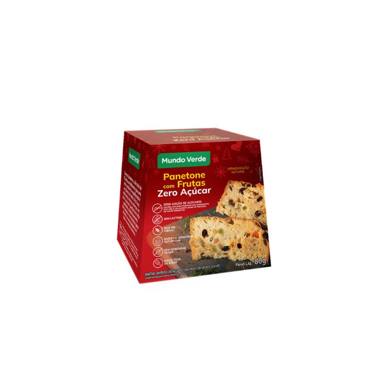 <p style="text-align: justify;">O <strong>Panetone de frutas Zero Açúcar</strong> <strong>Mundo Verde 80g</strong> é obtido a partir de fermentação natural e sem adição de açúcares. Uma excelente para o café da manhã, lanche da tarde ou sempre que quiser o “gostinho” do Natal.</p> <p style="text-align: justify;">Nesse formato com 80g, funciona como uma porção individual e pode ser também aquele presente gostoso para sua família e amigos.</p> <p style="text-align: justify;">Dica: Experimente aquecê-lo e combine com manteiga, geleias, frutas, caldas e coberturas.</p> <h2 style="text-align: justify;">Motivos para escolher o produto:</h2> <ul style="text-align: justify;"> <li>Zero açúcares</li> <li>Sem lactose</li> <li>Rico em fibras</li> <li>Baixo em gorduras saturadas</li> <li>Não contém gordura trans</li> <li>Baixo em sódio</li> </ul> <p style="text-align: justify;"> </p> <p style="text-align: justify;"><strong>ALÉRGICOS: CONTÉM DERIVADOS DE TRIGO, DE OVO E DE SOJA. PODE CONTER AMÊNDOA, AMENDOIM, AVEIA, AVELÃ, CASTANHAS, CASTANHA-DE-CAJU, CASTANHA-DO-PARÁ, CENTEIO, GERGELIM, MACADÂMIA, NOZES E PECÃS. CONTÉM GLÚTEN.</strong></p> <p style="text-align: justify;"><strong> </strong></p> <h2 style="text-align: justify;">A marca:</h2> <p style="text-align: justify;"><strong>Mundo Verde</strong> somos pioneiros e há mais de 35 anos, acreditamos que uma vida saudável e equilibrada é um direito de todos. Por isso, dedicamos nossos esforços em criar e oferecer produtos de alta qualidade, cuidadosamente selecionados e formulados para atender às necessidades de todos os nossos clientes.</p>