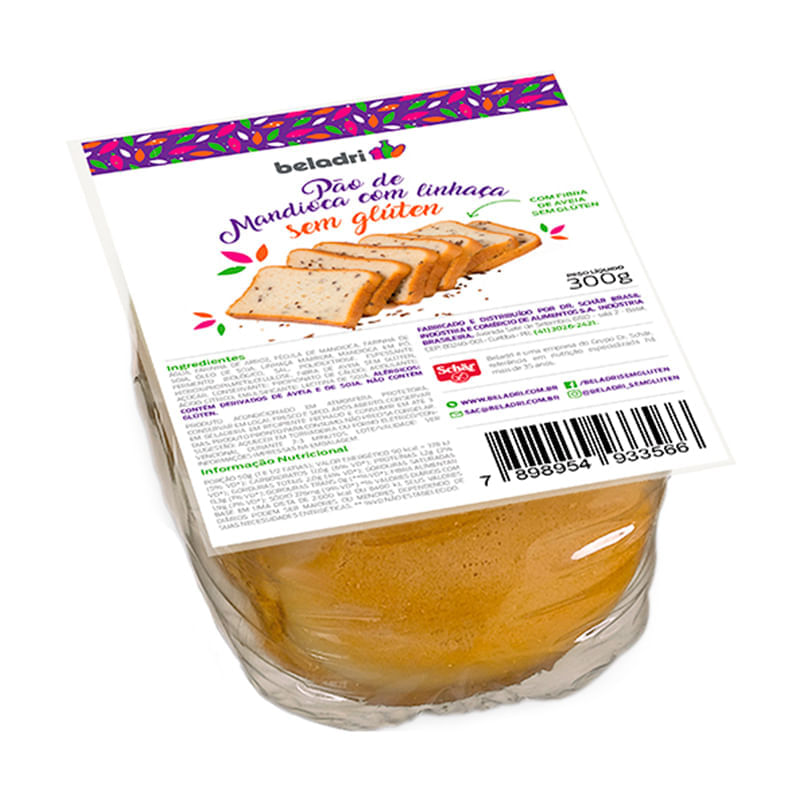 <p>Informações técnicas do produto:<br>O Pão de Mandioca, da Beladri, 300g, é uma opção de pão sem glúten e sem lactose, com adição de linhaça, acrescentando mais fibras no seu dia!<br><br>Fornece 133 Kcal a cada fatia e meia, sua massa apresenta frescor e maciez, além de ser livre de transgênicos e aditivos artificiais.<br><br>Recomendação de consumo:<br>Ideal para acompanhar o café da manhã ou lanche da tarde, ele já vem pronto para o consumo e uma sugestão é aquecê-lo na torradeira ou forno elétrico/convencional durante 2-3 minutos, ele ficará crocante e ainda mais saboroso.<br><br>Por que escolher esse produto?<br>Não contém glúten<br>Sem lactose<br>Fornece 3g de fibra alimentar<br>Livre de transgênicos<br>Não contém aditivos artificiais<br>Alergênicos:<br>Contém derivados de aveia e de soja.<br><br>Sobre a marca:<br>A Beladri é uma empresa do grupoSchär, líder mundial em alimentos sem glúten. A Beladri trabalha com produtos isentos de glúten, com baixo teor de sódio e gordura, mas que contém a mesma textura, sabor e aparência dos alimentos tradicionais, este é o diferencial.</p>