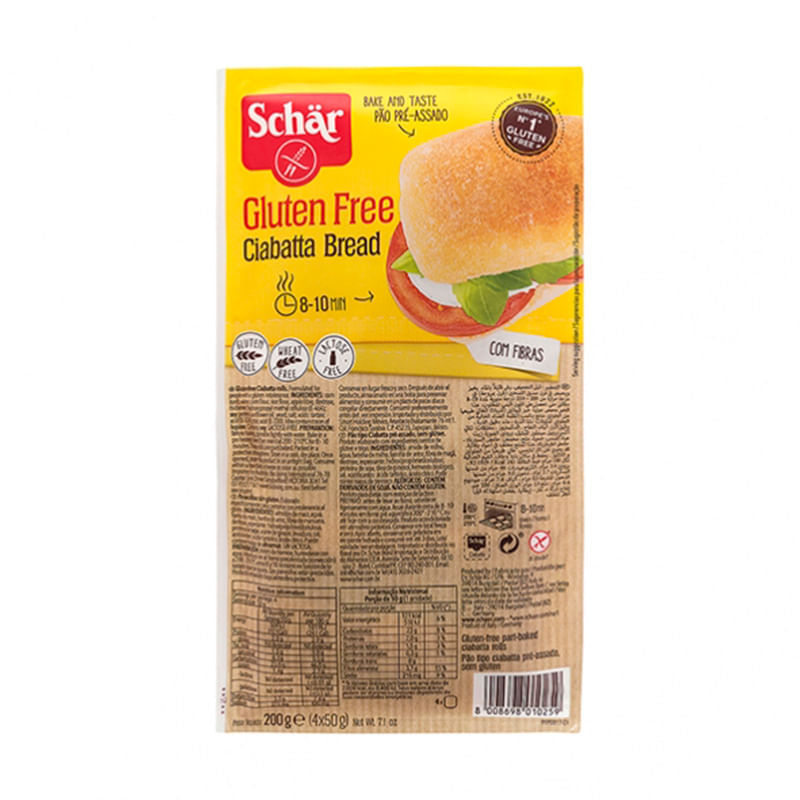 <p>Informações técnicas do produto:<br>O Pão Ciabatta da Schär, 200g, é um pão feito livre de gorduras hidrogenadas, corantes e conservantes. É indicado para celíacos, intolerantes à lactose, veganos. Sua embalagem é prática e mantém o frescor. Aquecido em apenas 10 minutos, tem um ciabatta crocante e recém assado.<br><br>Recomendação de consumo:<br>O produto pode ser consumido a qualquer momento do dia, ótima opção para lanches intermediários.<br><br>Modo de preparo: Umedecer ligeiramente o pão com água. Assar em forno pré-aquecido à 200°C por 8 a 10 minutos ou até ficar da cor desejada.<br><br>Porque escolher esse produto?<br>Sem glúten<br>Sem lactose<br>Não contém ovo ou leite adicionado<br>Vegano<br>Fonte de fibras</p>