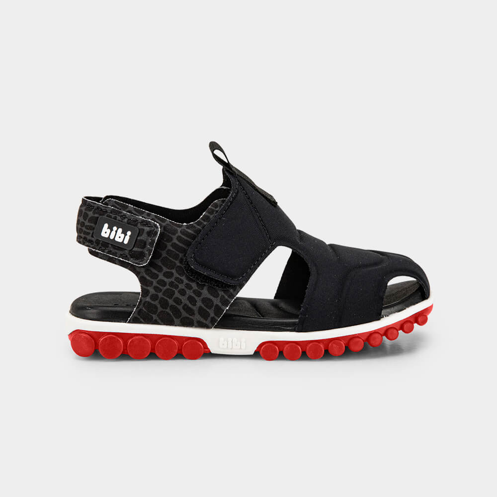 A sandália infantil perfeita para quem busca conforto, praticidade e estilo! <br> Confeccionada em elastano na cor preta, esta sandália masculina oferece um design moderno com detalhes de amassamento, proporcionando extremo conforto aos pés dos pequenos. <br> Possui a frente fechada e tiras que facilitam o calce e garantem um ajuste perfeito. <br> O solado que evita derrapegens, é projetado com desenhos que acompanham os movimentos do pé, reforçando o conceito de leveza e bem-estar. <br> A palmilha de EVA não só proporciona maior conforto e flexibilidade, como também é fácil de lavar e seca rapidamente, tornando-a ideal para o uso diário. <br> Escolha está sandália infantil masculina para garantir conforto, segurança e estilo em todas as aventuras do seu pequeno.