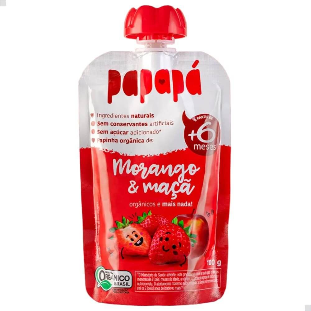 Descubra a Papinha Orgânica Morango e Maçã Papapá 100g, a escolha ideal para pais que valorizam a nutrição e a praticidade na alimentação de seus bebês. Perfeita para complementar a dieta ou iniciar a introdução alimentar, esta papinha oferece uma combinação deliciosa de ingredientes orgânicos, garantindo um desenvolvimento saudável e cheio de sabor para o seu pequeno.<br /> <br /> Para Quem é Essa Delícia? Nossos Pequenos Clientes<br /> <br /> A Papinha Orgânica Morango e Maçã Papapá é especialmente formulada para:<br /> <br /> Bebês a partir de 6 meses: Ideal para a fase de introdução alimentar, oferecendo uma textura suave e sabores que agradam o paladar infantil.<br /> <br /> Pais que buscam opções saudáveis e práticas: Facilita a rotina, garantindo uma alimentação nutritiva mesmo nos momentos mais corridos.<br /> <br /> Bebês com restrições alimentares: Livre de glúten, lactose e outros alérgenos comuns, proporcionando segurança e tranquilidade.<br /> <br /> Gênero: Unissex, adequada para todos os bebês.<br /> <br /> Benefícios que Nutrem e Encantam<br /> <br /> A Papinha Orgânica Morango e Maçã Papapá oferece inúmeros benefícios para o seu bebê:<br /> <br /> Ingredientes 100% Orgânicos: Morangos e maçãs cultivados sem agrotóxicos, garantindo um alimento puro e seguro.<br /> <br /> Rica em Vitaminas e Minerais: Nutrientes essenciais para o crescimento e desenvolvimento saudável do bebê.<br /> <br /> Sabor Delicioso e Natural: Uma combinação irresistível que estimula o paladar e promove uma alimentação prazerosa.<br /> <br /> Fácil Digestão: Textura suave e ingredientes selecionados para evitar desconfortos e alergias.<br /> <br /> Praticidade para o Dia a Dia: Embalagem prática e pronta para consumo, ideal para viagens e passeios.<br /> <br /> Diferenciais Exclusivos que Fazem a Diferença<br /> <br /> A Papapá se destaca pela qualidade e compromisso com a saúde infantil. Nossa Papinha Orgânica Morango e Maçã oferece:<br /> <br /> Certificação Orgânica: Garantia de um produto livre de resíduos tóxicos e produzido de forma sustentável.<br /> <br /> Fórmula Clean Label: Sem adição de açúcares, conservantes, corantes ou aromatizantes artificiais.<br /> <br /> Embalagem Segura e Prática: Pouch resistente e fácil de transportar, ideal para qualquer ocasião.<br /> <br /> Produção Sustentável: Respeito ao meio ambiente em todas as etapas, desde o cultivo até a embalagem.