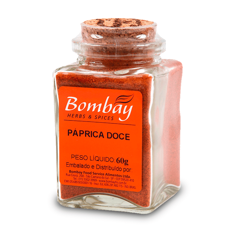 <p>Informações técnicas sobre o produto:<br>A Páprica doce, da Bombay, 60g, é feita a partir de pimentões vermelhos maduros, que são secos e posteriormente, moídos diversas vezes, resultando em um sabor suave!<br><br>Considerada uma especiaria típica espanhola, usada principalmente para colorir diversos pratos.<br><br>Recomendações de consumo:<br>Utilize como ornamento colorido para alimentos de cor clara, como: peixes, sopas, carnes, batatas, arroz, canapés e molhos.<br><br>Por que escolher esse produto? <br>· Sem glúten<br><br>· Livre de OGM (organismos geneticamente modificados)<br><br>· Sem adição de corantes e aromatizantes<br><br>· Pronto para uso<br><br>Sobre a marca:<br>A Bombay Herbs & Spices é reconhecida como a empresa com maior variedade neste segmento. Foi idealizada para atender a demanda de ervas, especiarias e pimentas de alta qualidade de todos os clientes apaixonados pela gastronomia. Já conta com mais de 500 produtos, 100% puros e com uma infinidade de sabores.</p>