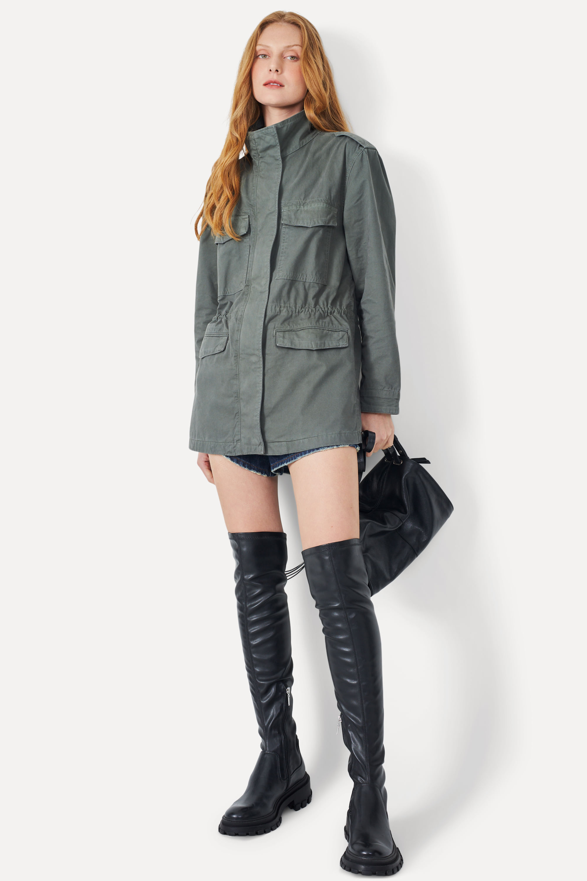 Apresentamos a Parka Sarja. Com modelagem solta ao corpo, possui manga comprida, bolsos frontais com lapela e faixa para ajustar a cintura. Combine com jeans e tênis para um look casual e despojado, ou com uma calça de alfaiataria e salto para uma produção mais elegante. A modelo tem 1,77 de altura, 74 de busto e veste 36. Comprando esta peça, você viabiliza cinco pratos de comida através do nosso programa 1P5P. Parka produzida eticamente no Brasil.