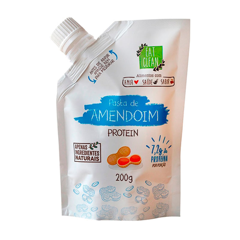 <p>A Pasta Amendoim Protein, da Eat Clean contŽm 7,2g de prote’nas por por‹o de 20g do produto. ƒ 100% natural feito apenas com amendoim, prote’na do arroz e xilytol.</p>