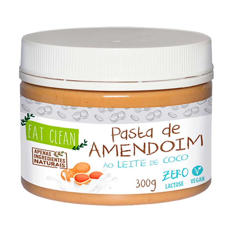 <p>O <strong>Pasta de Amendoim ao Leite de Coco Eat Clean 300g</strong>, tem sua base de amendoim, e o amendoim faz parte da família das leguminosas e é uma importante fonte de proteína vegetal e de gordura insaturada, conhecida como gordura saudável atuando na saúde do coração. Além disso, é rico em fitoesterois, um componente que tem uma importante ação no controle do colesterol.</p> Sobre os ingredientes: <p>Amendoim Torrado, Leite de Coco em Pó e Educolrante Xylitol. Não contém Glúten.</p> Sugestão de consumo: <p>Com frutas, na tapioca, mingau, com bolacha de arroz, torradinhas ou panquecas.</p> Motivos para escolher o produto: <ul> <li> <p>Vegana</p> </li> <li> <p>100% natural</p> </li> <li> <p>Sem glúten e lactose</p> </li> <li> <p>Vitamina E e magnésio</p> </li> <li> <p>Rico em antioxidantes</p> </li> </ul> <strong>Sobre a marca:</strong> <p>A <strong>Eat Clean</strong> produtos naturais começou apenas como uma loja, mas logo se tornou uma reconhecida marca de alimentos saudáveis e gostosos, com gostinho de comida caseira, sem rótulos enganadores, além de respeitar a natureza. Alimentos com amor, saúde e sabor, com ingredientes de origem vegetal.</p>