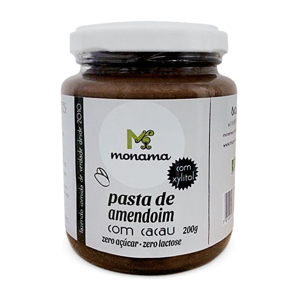 A Pasta de Amendoim Cacau e Xylitol, da Monama é uma opção saudável e saborosa tendo em sua composição xylitol, cacau nibs e proteína de arroz. Fonte de gorduras boas e proteínas. Não contém glúten e lactose. Possui baixo teor de sódio.