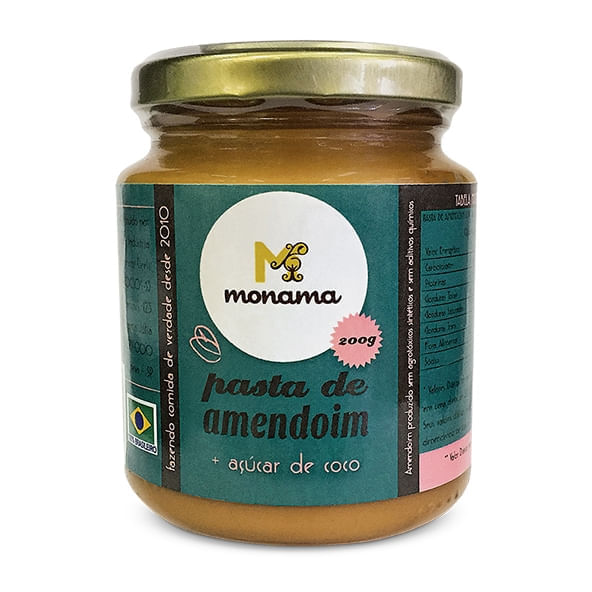 A Pasta de Amendoim com Açúcar de Coco, da Monama é uma ótima opção para ser consumido a qualquer hora do dia. Sem glúten e sem lactose, podendo ser consumido por pessoas intolerantes ou alérgicas a esses ingredientes, além de não conter adição de açúcar.