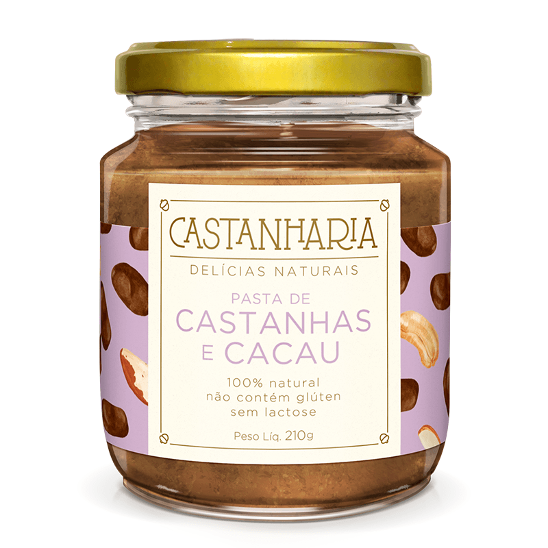 Informações técnicas do produto:<br> A Pasta de Castanhas e Cacau, da Castanharia é produzido artesanalmente, feita com ingredientes selecionados que inclui castanha de caju e cacau. É livre de glúten e lactose, podendo ser consumido por pessoas com doença celíaca ou intolerantes.<br> <br> Recomendação de consumo:<br> As pastas são ótimas opções para consumir no café da manhã e nos lanches intermediários. Podem ser consumidas com pães, bolachas, torradas, shakes, frutas, iogurtes, em receitas e até mesmo como sobremesa.<br> <br> Informações sobre alergênicos:<br> Contém castanha de caju, amêndoa e castanha do pará. Pode conter nozes, macadâmia e pistache.<br> <br> Porque escolher esse produto?<br> Zero açúcar<br> Não contém glúten<br> Produto artesanal<br> Isento de gordura trans<br> Livre de sódio<br> Livre de conservantes e aromatizantes<br> Vegano<br> Sobre a marca:<br> A Castanharia oferece diversas opções de pastas de castanhas e sementes, elaboradas de forma artesanal e natural, sem a utilização de qualquer aditivo químico em sua composição, ou açúcar refinado e adoçantes artificiais. As pastas são elaboradas com ingredientes cuidadosamente selecionados, resultando em um produto com alta qualidade nutricional.