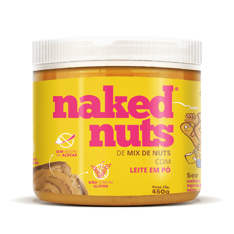 <p>O <strong>Pasta de Mix de Nuts com Leite em Pó Naked Nuts 450g</strong> possui formulação natural, zero açúcar, sem glúten e totalmente livre de conservantes, aromatizantes e corantes sintéticos. É uma opção nutritiva e saborosa para o café da manhã, no pré ou pós-treino e no lanchinho da tarde.</p> <p>Esta versão combina as melhores pastas de Amendoim e Castanha de Caju do mercado com um toque de Chocolate Branco, feito com Manteiga de Cacau e uma porção generosa de <strong>Leite em Pó</strong>. O resultado é um gostinho de infância que agrada muitos paladares, inclusive o das crianças, e reforça a nutrição do corpo.</p> Sugestão de consumo: <p>As nossas queridinhas são ótimas opções para complementar qualquer refeição do seu dia. Acredite, este alimento irá surpreender as suas expectativas!</p> <p>Perfeito para fazer shakes e smoothies, rechear panquecas, waffles, crepiocas ou tapiocas; comer com pães integrais; combinar com a sua frutas; experimente pura ou como ingrediente de qualquer receita deliciosa!</p> Sobre os ingredientes: <p>Castanha de Caju, Amendoim, Leite em pó, Chocolate Branco Zero Adição de Açúcares.</p> Motivos para escolher o produto: <ul> <li> <p>Zero açúcar</p> </li> <li> <p>Pré e Pós Treino</p> </li> <li> <p>Uma excelente fonte de nutrientes, gorduras</p> </li> <li> <p>Boas e proteicas.</p> </li> <li> <p>Para todos os públicos</p> </li> <li> <p>Sabor e saúde</p> </li> <li> <p>100% natural</p> </li> <li> <p>Zero adição de açúcar</p> </li> <li> <p>Sem glúten</p> </li> <li> <p>Sem adição de conservantes</p> </li> <li> <p>Extremamente versátil e textura única</p> </li> </ul> Precauções: <p>Contém alérgicos como castanha de caju, amendoim, leite, derivados do leite e soja. Pode conter ovo, amêndoa, castanha do Pará, avelã e pistache.</p> Sobre a marca: <p>A <strong>Naked</strong><strong> </strong>entende a vida real e quer estar com você na semana puxada de treinos e foco na dieta e também ser a cobertura da sua sobremesa favorita no final de semana.</p>