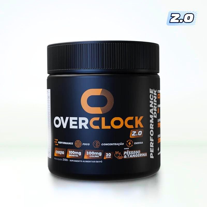 <p>O <strong>Overclock 2.0 </strong>sabor<strong> pêssego com tangerina </strong>da<strong> Overclock, </strong>é um nootrópico natural, composto por taurina, coenzima Q10, inositol, colina e um blend de vitaminas que agem na melhor performance, no foco, concentração e desempenho mental. É um suplemento alimentar ideal para quem busca mais disposição para a prática de atividade física, tarefas de trabalho, estudo ou atividades que demandem concentração e raciocínio rápido, como os jogos virtuais, por exemplo. Uma combinação leve, saborosa e refrescante. </p> <h2><strong>Sugestão de consumo: </strong></h2> <p>Pode ser consumido antes da prática de exercícios, da rotina de trabalho, estudo ou conforme recomendação do médico ou nutricionista. </p> <h2><strong>Motivos para escolher o produto: </strong></h2> <ul> <li> <p>Favorece a performance e desempenho mental;</p> </li> <li> <p>Ideal para quem exerce funções com alta demanda do sistema cognitivo, como os praticantes de E-sports;</p> </li> <li> <p>Um aliado antes da prática de atividade física;</p> </li> <li> <p>Contém Coenzima Q10 e Inositol;</p> </li> <li> <p>Fonte de vitaminas do complexo B; </p> </li> <li> <p>Fornece 99mg de cafeína por porção;</p> </li> <li> <p>Sem adição de açúcar.</p> </li> </ul> <p> </p> <h2><strong>A Marca</strong></h2> <p>A Overclock é uma marca que desenvolve produtos pensando principalmente no público que pratica E-sports. Com uma identidade que visa proporcionar mais performance para a prática desse tipo de atividade e tantas outras que exijam grande esforço do sistema cognitivo. Seu nome foi pensado baseando-se em uma expressão muito utilizada no mundo da tecnologia, que significa modificar algum componente do seu setup para que ele funcione mais rápido do que deveria. </p>