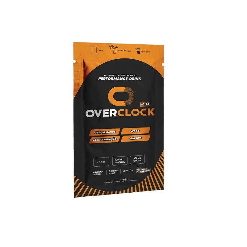 <h2 style="text-align: justify;"><strong>PERFORMANCE DRINK 2.0 PÊSSEGO COM TANGERINA SACHÊ OVERCLOCK</strong></h2> <p style="text-align: justify;">O <strong>Overclock 2.0 </strong>sabor<strong> pêssego com Tangerina Overclock, </strong>é um suplemento alimentar natural, composto por taurina, coenzima Q10, inositol, colina e um blend de vitaminas que pode contribuir na ação energética. Uma combinação leve, saborosa e refrescante. </p> <h2 style="text-align: justify;"><strong>Sugestão de consumo: </strong></h2> <p style="text-align: justify;">Dilua o sachê (7g) em 300ml de água gelada e misture até a diluição total. Pode ser consumido antes da prática de exercícios, da rotina de trabalho, estudo ou conforme recomendação do médico ou nutricionista. </p> <h2 style="text-align: justify;"><strong>Motivos para escolher o produto: </strong></h2> <ul style="text-align: justify;"> <li> <p>Elaborado com ingredientes naturais; </p> </li> <li> <p>Pode ser consumido antes do exercício físico;</p> </li> <li> <p>Contém Coenzima Q10 e Inositol;</p> </li> <li> <p>Fonte de vitaminas do complexo B; </p> </li> <li> <p>Fornece 99 mg de cafeína por porção;</p> </li> <li> <p>Sem adição de açúcar. </p> </li> </ul> <h2 style="text-align: justify;"><strong>A Marca</strong></h2> <p style="text-align: justify;"><strong>Overclock </strong>é uma marca que desenvolve produtos pensando principalmente no público que pratica exercício físico. Com uma identidade que visa proporcionar mais performance para a prática desse tipo de atividade e tantas outras que exijam grande esforço do sistema cognitivo. Construímos uma comunidade que cresce cada dia mais, tanto para potencializar performance esportiva, como para estudantes, trabalhadores e todos os outros que buscam seu melhor sempre. Seu nome foi pensado baseando-se em uma expressão muito utilizada no mundo da tecnologia, que significa modificar algum componente do seu setup para que ele funcione mais rápido do que deveria. </p> <p style="text-align: justify;"> </p>