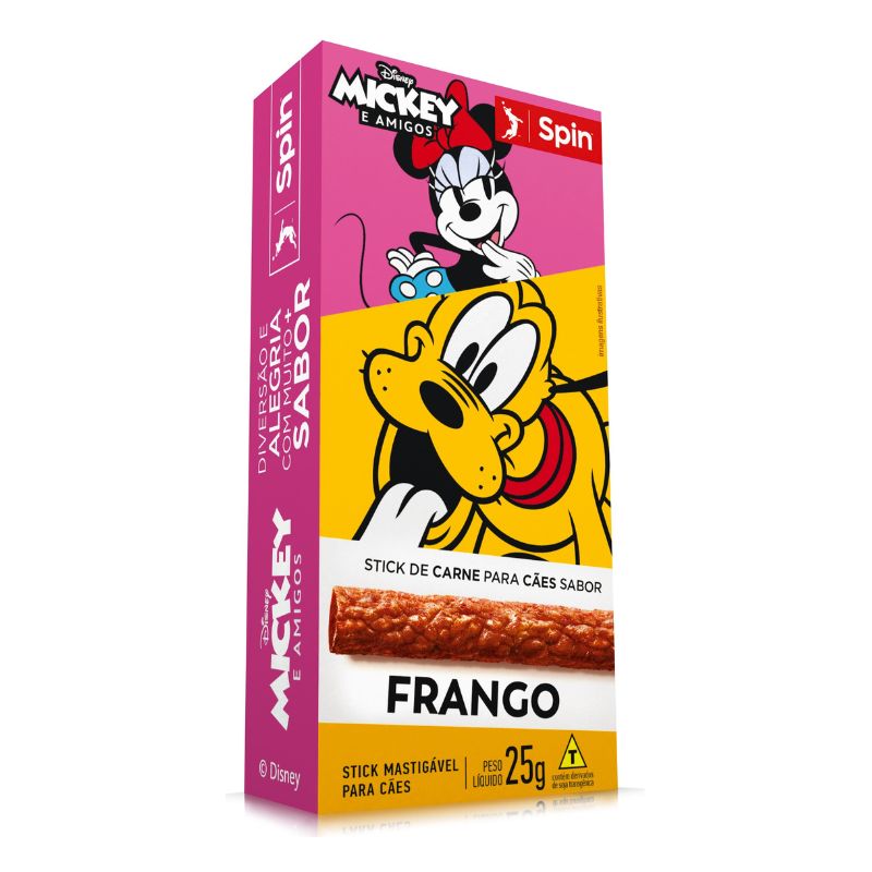 <p>O <strong>Petisco Palito Mickey sabor Frango,</strong> da<strong> Spin Pet</strong>, 25g, &eacute; um stick mastig&aacute;vel de carne para c&atilde;es sem adi&ccedil;&atilde;o de transg&ecirc;nico e menos adi&ccedil;&atilde;o de s&oacute;dio. O Petisco para C&atilde;o Disney Up, &eacute; uma &oacute;tima op&ccedil;&atilde;o de agrado para seu pet, super nutritivo, fornece&nbsp; 35% de prote&iacute;na, al&eacute;m de frutas, legumes e cereais.</p> <h2>Ingredientes:</h2> <p>Mi&uacute;dos Bovinos, carne mecanicamente separada de aves (CMS), prote&iacute;na de soja, umectante glicerina, amido, glicose, ma&ccedil;&atilde; desidratada, cenoura desidratada, quinoa, cloreto de s&oacute;dio (sal comum), conservante sorbato de pot&aacute;ssio, real&ccedil;ador de sabor glutamato monoss&oacute;dico, antioxidante &aacute;cido c&iacute;trico. Eventual substituto: &aacute;cido s&oacute;rbico.</p> <h2>Motivos para escolher o produto:</h2> <ul> <li> <p>80% de carnes frescas&nbsp;</p> </li> <li> <p>Enriquecido com &Ocirc;mega 3 e 6 para uma pelagem brilhante</p> </li> <li> <p>Menos s&oacute;dio</p> </li> <li> <p>Cont&eacute;m fibras e prebi&oacute;ticos</p> </li> <li> <p>Petisco super macio</p> </li> </ul> <h2>Sobre a marca:</h2> <p>A Spin Pet&trade; &eacute; uma marca que acredita na pesquisa e no tempo para criar produtos exclusivos e projetos profissionais de alta qualidade para o mercado pet. Animais de estima&ccedil;&atilde;o saud&aacute;veis levam alegria &agrave;s suas fam&iacute;lias. &Eacute; por isso que s&atilde;o t&atilde;o dedicados e cuidadosos no preparo de cada receita e lote de cada produto.</p> <p>&nbsp;</p>