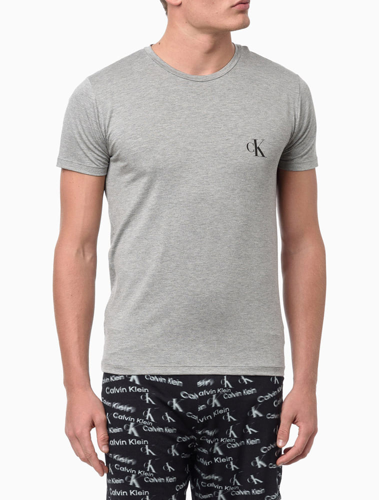 PIJAMA MASCULINO EM VISCOSE, BLUSA MANGA CURTA COM LOGO FRONTAL E BERMUDA ESTAMPADA COM ELÁSTICO PERSONALIZADO NO CÓS CK WARPED CALVIN KLEIN SLEEPWEAR.
