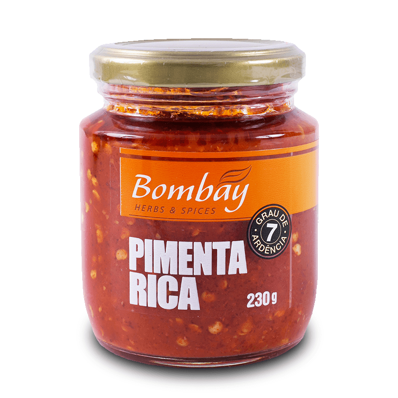 <p>Informações técnicas:<br>A Pimenta rica, da Bombay, 165g, é um delicioso molho de pimenta, feito com pimenta dedo-de-moça. Um dos produtos mais amados pela família Bombay!<br><br>Ótima combinação com carnes e para acompanhar a feijoada!<br><br>Motivos para escolher esse produto?<br>Sem glúten<br>Livre de OGM (organismos geneticamente modificados)<br>Pronto para uso<br>Sem adição de corantes e aromatizantes<br>Informações sobre a marca:<br>A Bombay Herbs & Spices é reconhecida como a empresa com maior variedade neste segmento. Foi idealizada para atender a demanda de ervas, especiarias e pimentas de alta qualidade de todos os clientes apaixonados pela gastronomia. Já conta com mais de 500 produtos, 100% puros e com uma infinidade de sabores.</p>
