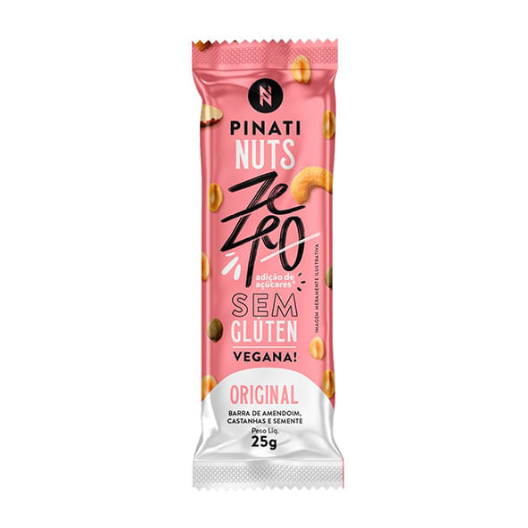 <p>Informações técnicas do produto:<br><br>A Barra Nuts Zero Original, da Pinati, é uma opção saudável e gostosa para seus lanches. É feita com castanhas, possui baixo teor de carboidratos e de sódio, é vegana, sem glúten e fonte de fibras. Também não contém conservantes, corantes ou aromatizantes artificiais.<br><br>Sobre os ingredientes:<br><br>Castanhas: são fonte de antioxidantes, ricas em proteínas, gorduras insaturadas e fibras, além disso, contém vitaminas e minerais essenciais.<br><br>Semente de abóbora: é rica em magnésio, triptofano, em fibras, proteínas e gorduras insaturadas.<br><br>Sementes de girassol: é uma fonte de proteínas, fibras, vitamina E, vitaminas do complexo B e diversos minerais, como cálcio, ferro, magnésio, fósforo, potássio, zinco, cobre, manganês e selênio. Também contém fitoesteróis e ácidos graxos ômega 3 e 6.<br><br>Recomendações de consumo:<br><br>A Barra Nuts Zero Original possui embalagem prática que pode ser levada para todos os lugares e é ideal para deixar na bolsa ou na gaveta do trabalho.<br><br>Por que escolher este produto:<br><br>Vegano<br><br>Prático<br><br>Sem glúten<br><br>Fonte de fibras<br><br>Baixo teor de sódio<br><br>Low carb<br><br>Não contém corantes, conservantes ou aromatizantes artificiais<br><br>Sobre a marca:<br><br>A Pinati é uma empresa jovem que veio para fazer a diferença, com preocupação em produzir alimentos práticos, seguros, deliciosos e nutritivos. Seus produtos incluem barras de nuts e biscoitos veganos sem glúten e lactose, feitos com ingredientes naturais e sem conservantes, corantes ou aromatizantes artificiais.</p>
