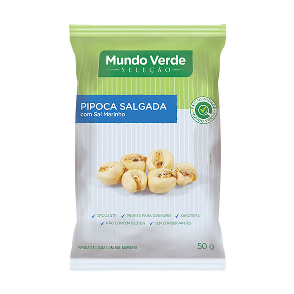 Informações técnicas do produto:<br>_x000D_ A Pipoca salgada com sal marinho Mundo Verde Seleção, é uma pipoca leve e crocante, feita com canjica de milho, óleo de coco e sal marinho. Ótima opção para lanches saudáveis e nutritivos, um snack pronto para consumo. <br>_x000D_ <br>_x000D_ Recomendação de consumo.<br>_x000D_ Ótima para lanches saudáveis e nutritivos, uma opção de snack para ser consumida ao longo do dia, pronta para consumo. <br>_x000D_ <br>_x000D_ Motivos para escolher esse produto?<br>_x000D_ Elaborada com óleo de coco e sal marinho<br>_x000D_ É um alimento leve e crocante<br>_x000D_ Pronta para consumo<br>_x000D_ Não contém glúten<br>_x000D_ Sem conservantes<br>_x000D_ Informações sobre a marca:<br>_x000D_ A Mundo Verde Seleção é uma linha de produtos para quem quer ter uma vida mais saudável e gostosa. A marca quer ajudar a colocar essas escolhas em prática. A paixão e conhecimento pelos alimentos, nutrientes, aromas e sabores permitem a seleção das melhores opções saudáveis para qualquer ocasião. Conheça a linha completa Mundo Verde Seleção, com inúmeros produtos saudáveis e gostosos para facilitar seu dia a dia.