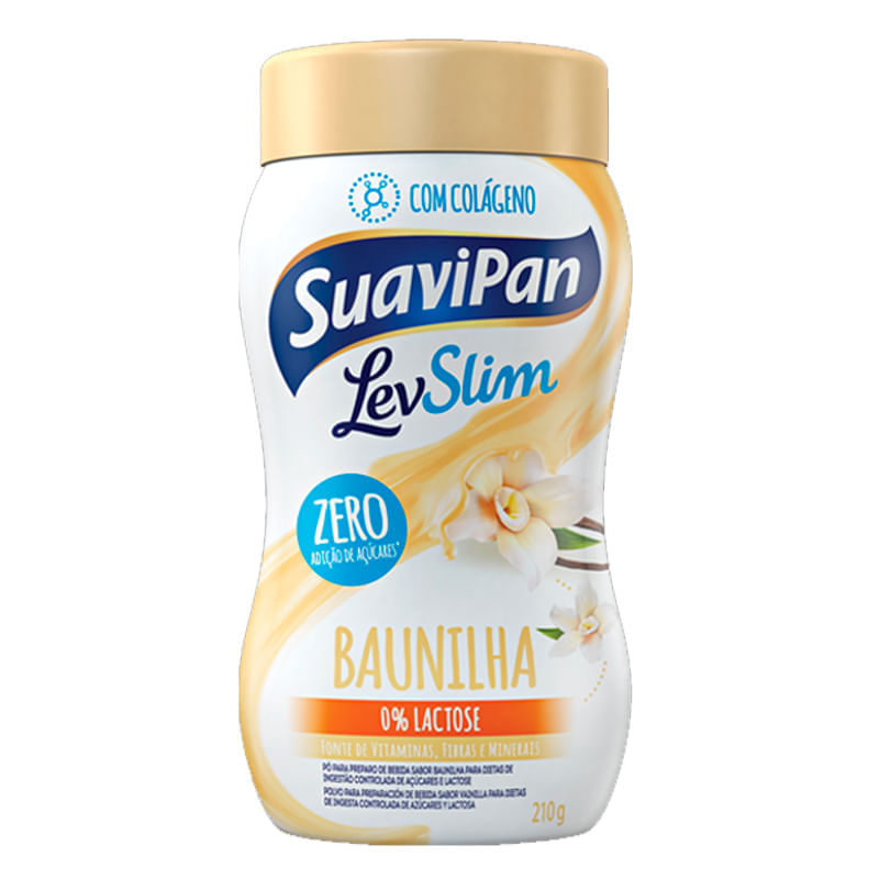 <p>O <strong>LevSlim</strong>, da <strong>Suavipan </strong>é um <strong>pó para preparo de bebida sabor baunilha zero açúcar</strong>, ótima escolha para quem quer uma opção prazerosa sem abrir mão da saúde e de uma alimentação equilibrada.</p> Recomendação de consumo: <p>Pode ser consumido a qualquer hora do dia, como nos lanches intermediários ou café da manhã.</p> Alérgicos: <p>Contém derivados de leite e de soja.</p> Por que escolher este produto? <ul> <li>Sem adição de açúcar</li> <li>Não contém glúten</li> <li>Fonte de vitaminas e minerais</li> <li>Fonte de fibras</li> <li>Sem lactose</li> <li>Com colágeno</li> <li>Isento de gordura trans</li> <li>Baixo teor de sódio</li> <li>Apenas 50 kcal por porção</li> </ul> Sobre a marca: <p></p> <p>A Suavipan foi fundada na cidade de São Paulo em 1998 e, desde então, se empenha em desenvolver e fabricar os melhores e mais saudáveis alimentos em sua categoria. Para isso, trabalha com as mais seletas matérias-primas. Possuem quatro linhas distintas de produtos, comercializadas em todo o Brasil. A linha zero adição de açúcares, a de produtos orgânicos, de produtos Integrais e a linha LevSlim.</p>