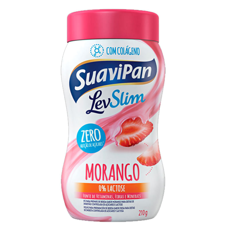 <p>O <strong>LevSlim</strong>, da <strong>Suavipan </strong>é um <strong>pó para preparo de bebida sabor morango zero açúcar</strong>, ótima escolha para quem quer uma opção prazerosa sem abrir mão da saúde e de uma alimentação equilibrada.</p> Recomendação de consumo: <p>Pode ser consumido a qualquer hora do dia, como nos lanches intermediários ou café da manhã.</p> Alérgicos: <p>Contém derivados de leite e de soja.</p> Por que escolher este produto? <ul> <li>Sem adição de açúcar</li> <li>Não contém glúten</li> <li>Fonte de vitaminas e minerais</li> <li>Fonte de fibras</li> <li>Sem lactose</li> <li>Com colágeno</li> <li>Isento de gordura trans</li> <li>Baixo teor de sódio</li> <li>Apenas 49 kcal por porção</li> </ul> Sobre a marca: <p></p> <p>A Suavipan foi fundada na cidade de São Paulo em 1998 e, desde então, se empenha em desenvolver e fabricar os melhores e mais saudáveis alimentos em sua categoria. Para isso, trabalha com as mais seletas matérias-primas. Possuem quatro linhas distintas de produtos, comercializadas em todo o Brasil. A linha zero adição de açúcares, a de produtos orgânicos, de produtos Integrais e a linha LevSlim.</p>