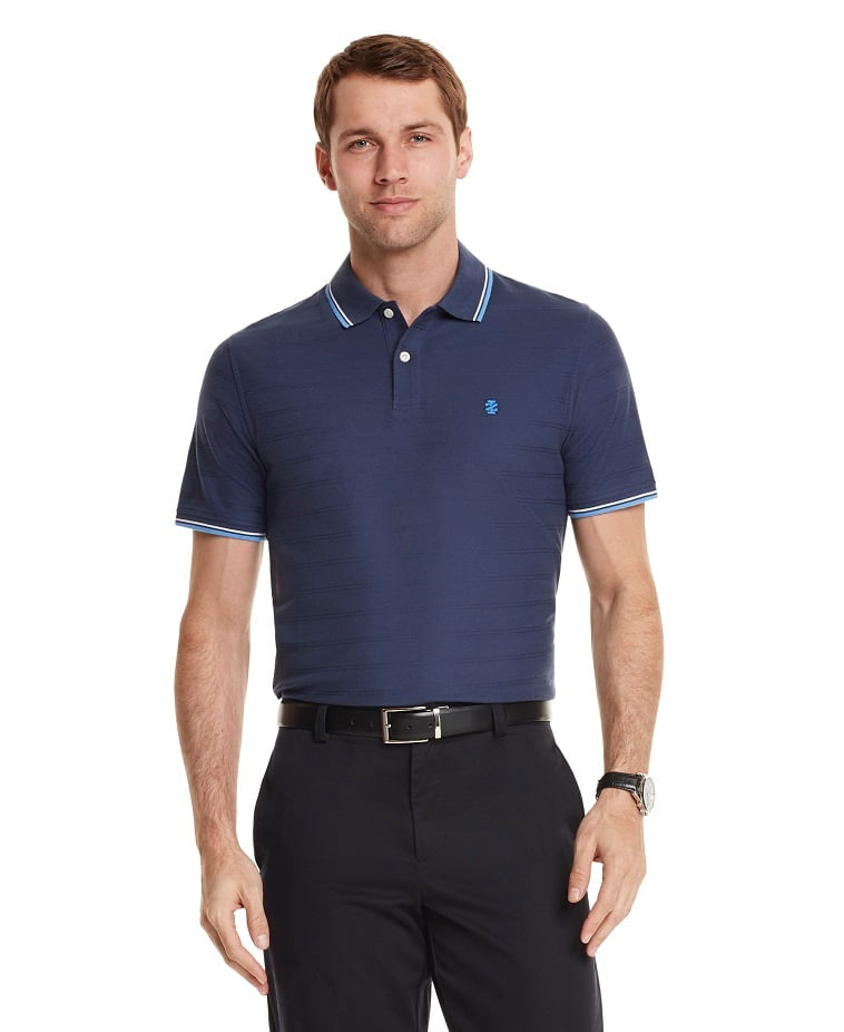 A camisa polo manga curta azul marinho da IZOD porporciona conforto e elegância ao seu look. Em modelagem regular , tem strech natural, e possui uma técnica para a gola anti-enrolamento e faz parte do programa advantage . A gola e punhos das mangas tem friso em cor contrastante. Todos os produtos advantage tem uma estrutura de malha que permite absorção rápida e sensação de conforto.É uma peça básica e fácil de coordenar com looks casuais e de trabalho.