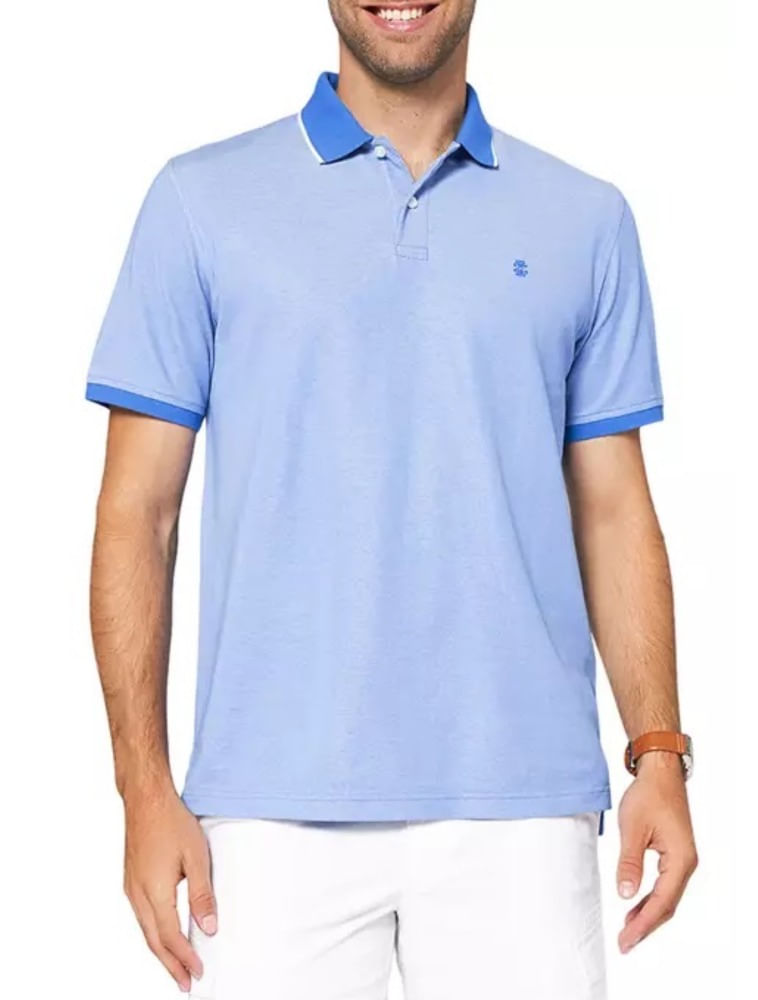 Comece bem o seu dia com o conforto desta polo single dye da IZOD, confeccionada em tecido piqué de vantagem ligeiramente mais escuro nos punhos e gola.