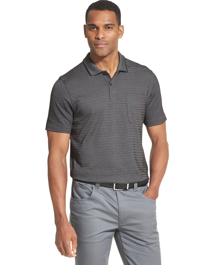 Polo Manga Curta Regular Masculino Jacard Bolso Listras Preto Van Heusen - Van Heusen