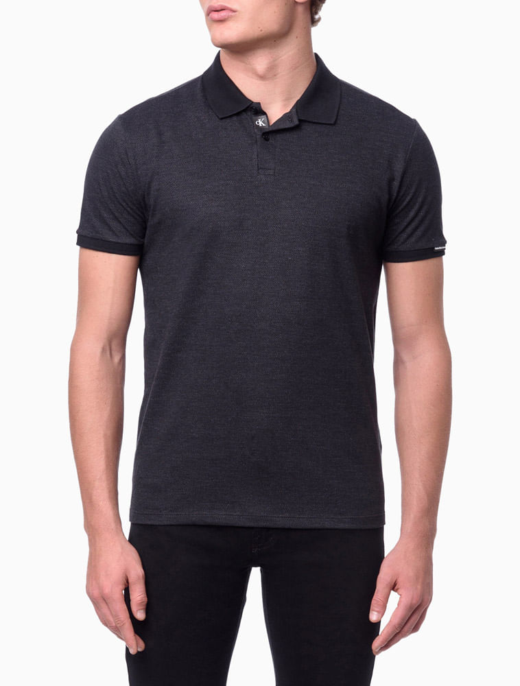 Polo Masculina Manga Curta Piquet Pontilhado Calvin Klein Jeans - Preto