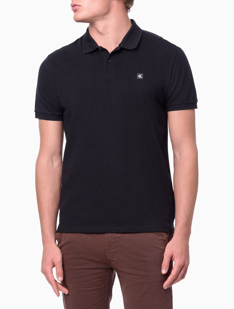 Polo Calvin Klein Jeans manga curta em piquet duplo, gola e punhos de retilínea, detalhe logo exclusivo da marca. Modelagem Básica.