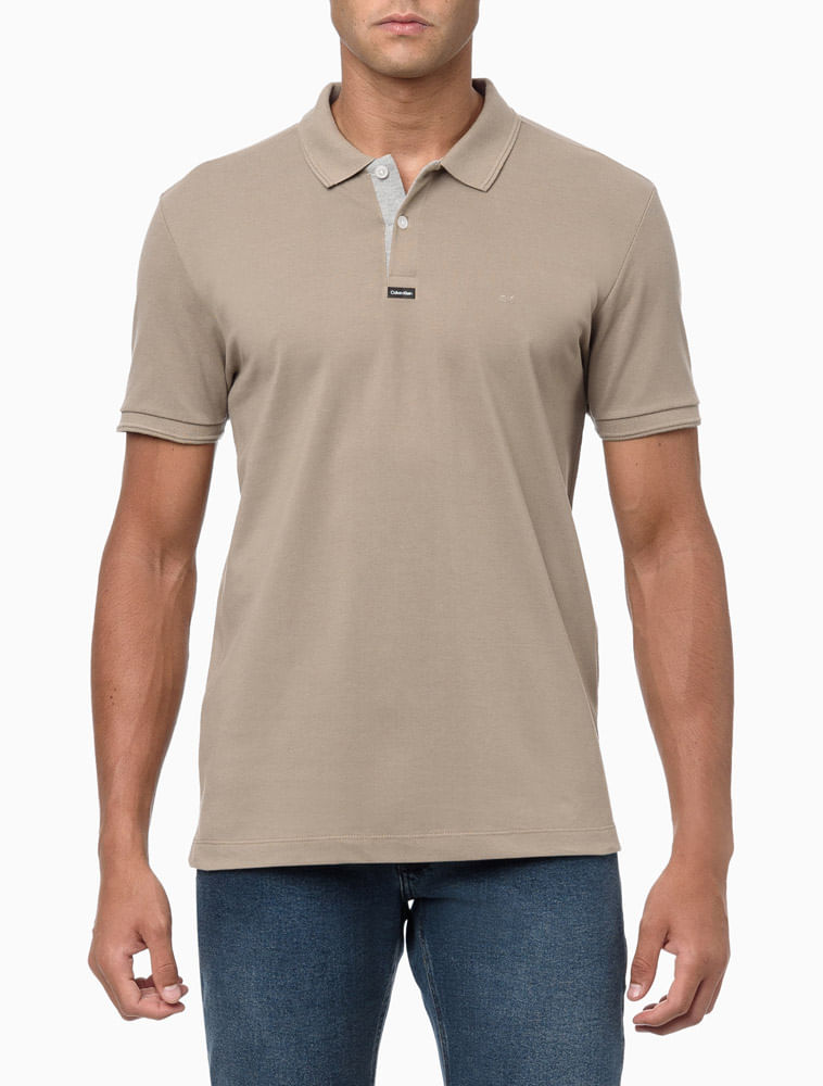 Polo Calvin Klein masculina manga curta de piquet duplo, gola e punhos de retilínea, detalhe de logo personalizado no peitilho. Modelagem slim.