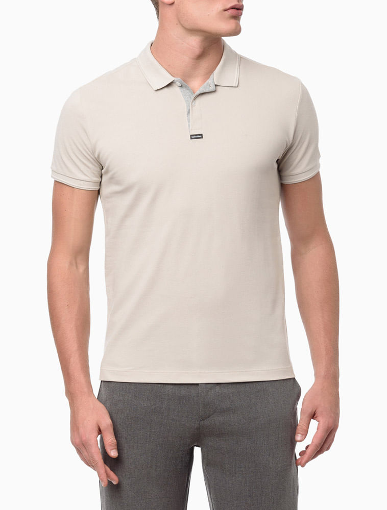 Polo Calvin Klein masculina manga curta de piquet duplo, gola e punhos de retilínea, detalhe de logo personalizado no peitilho. Modelagem slim.