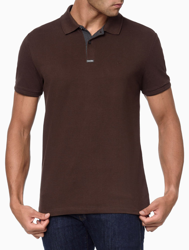 Polo Calvin Klein masculina manga curta de piquet duplo, gola e punhos de retilínea, detalhe de logo personalizado no peitilho. Modelagem slim.