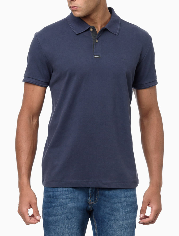 Polo Calvin Klein masculina manga curta de piquet duplo, gola e punhos de retilínea, detalhe de logo personalizado no peitilho. Modelagem slim.