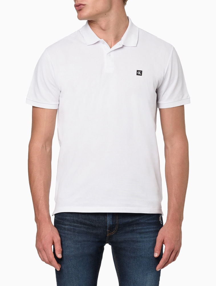 Polo Calvin Klein Jeans manga curta em piquet duplo, gola e punhos de retilínea, detalhe logo exclusivo da marca. Modelagem Básica.