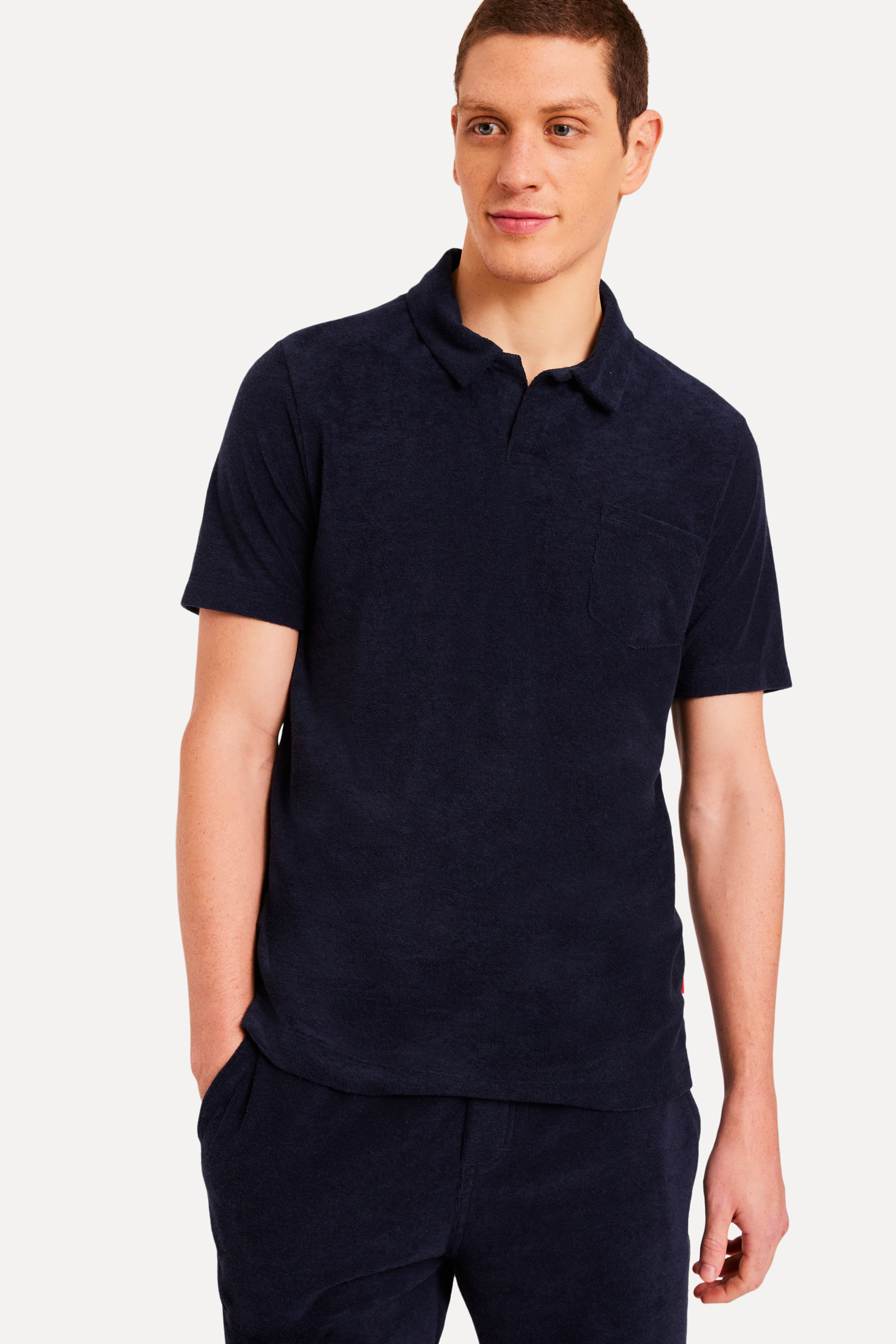 Com nossa Polo MC Atoalhada Lisa com Bolso, você pode se sentir um toque diferenciado, de um tecido leve e fresco. Feita com malha mista de algodão e poliéster, ela tem manga curta, modelagem regular e cores exclusivas. Além disso, seus detalhes únicos, como a aplicação de etiquetas decorativas, fazem toda a diferença no visual. Camisa produzida eticamente no Brasil. Comprando esta peça, você viabiliza cinco pratos de comida através do nosso programa 1P5P. O modelo tem 1,90 m de altura, 95 cm de tórax e veste M.