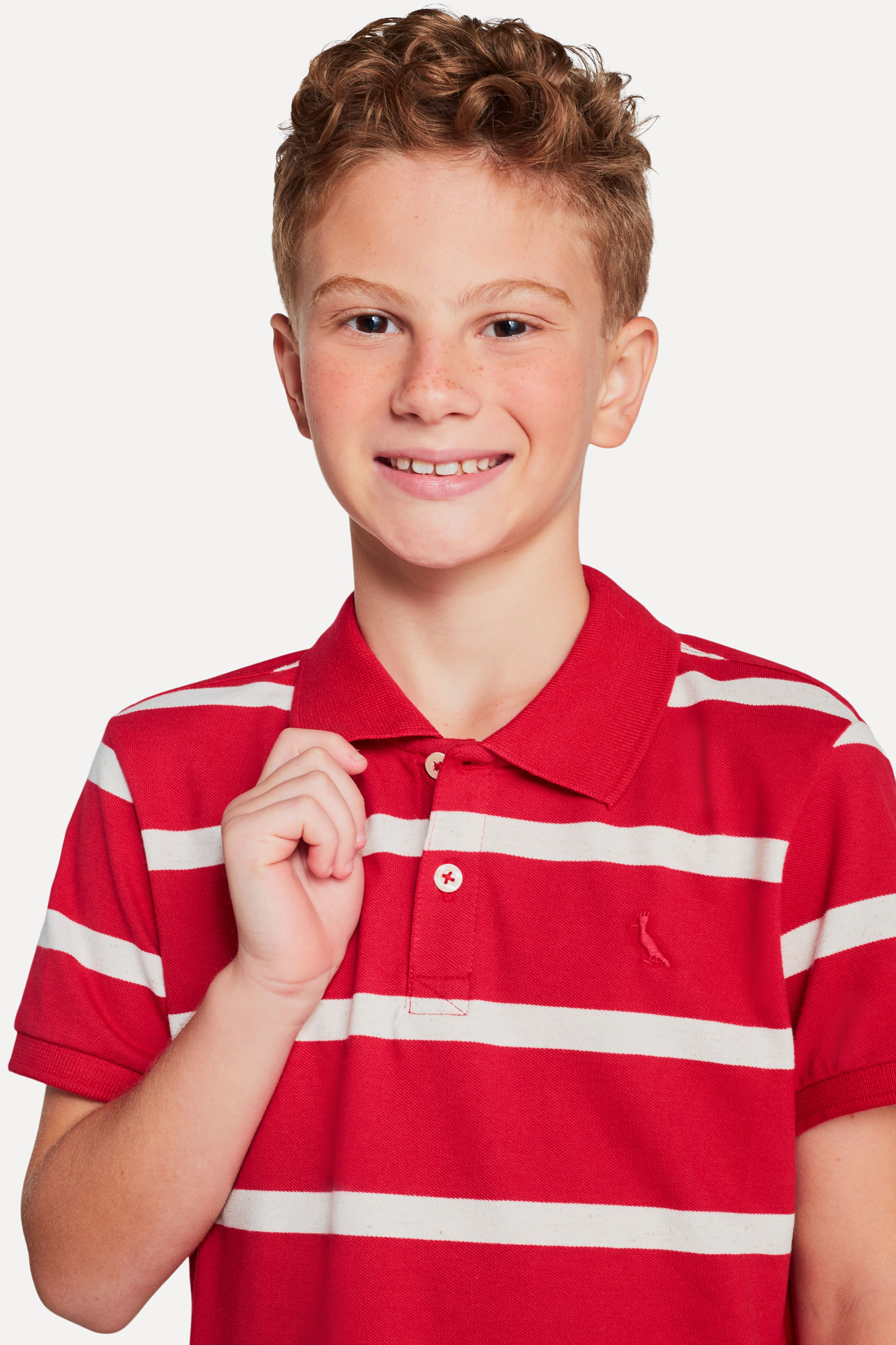 Camisa da linha infantil Reserva Mini. O modelo polo é em malha piquet com listras largas. Possui gola e punhos em malha canelada e o pica-pau bordado é na mesma cor da peça. Coringa e atemporal! Produzido eticamente no Brasil. Comprando esta peça, você complementa cinco pratos de comida através do nosso programa 1P=5P.