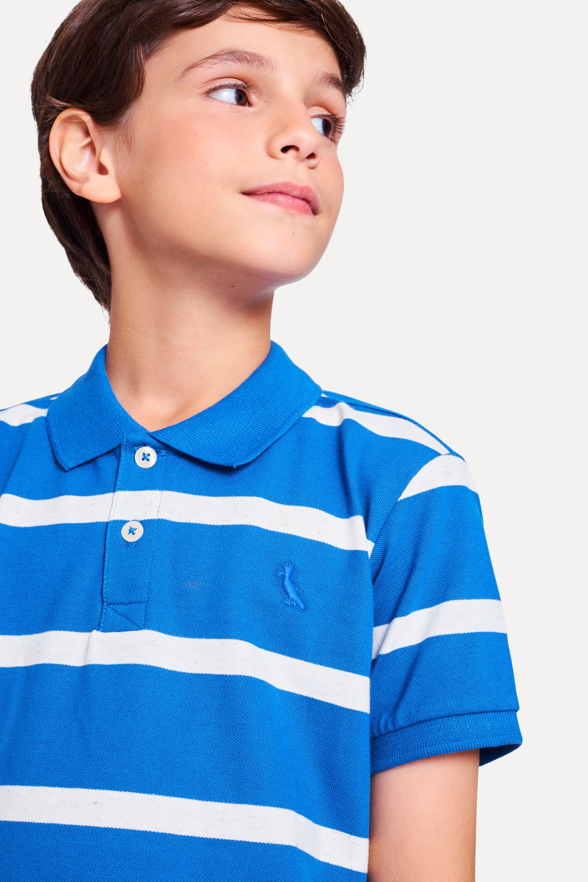Camisa da linha infantil Reserva Mini. O modelo polo é em malha piquet com listras largas. Possui gola e punhos em malha canelada e o pica-pau bordado é na mesma cor da peça. Coringa e atemporal! Produzido eticamente no Brasil. Comprando esta peça, você complementa cinco pratos de comida através do nosso programa 1P=5P.