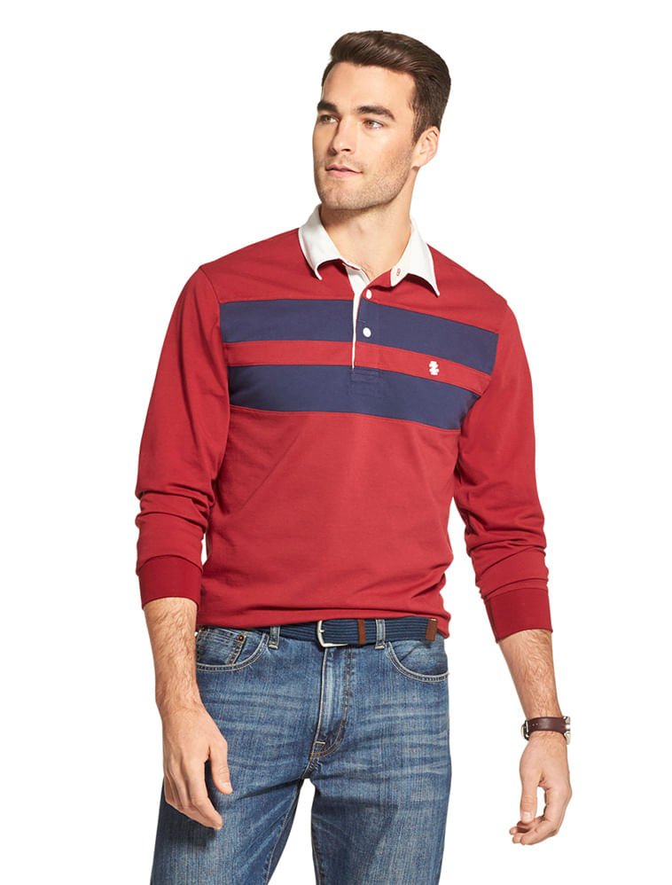 A camisa polo manga longa bordô com listras largas e horizontais no peito da IZOD proporciona modernidade para o seu look. Em modelagem regular , esta polo é inspirada nos modelos de uniformes usados em jogos de rugby americano. Em 100% algodão é extremamente confortável e pode ser usada em dias de meia estação em looks mais casuais.