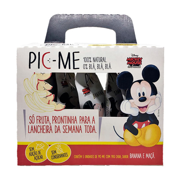 <p>A Squeeze de Frutas, Banana e Maçã, da Pic-me veio para ajudar e melhorar o consumo de frutas em todas as faixas etárias, neste squeeze temos o purê da maçã e da banana, com um toque de limão para auxiliar na conservação e garantir o sabor das frutas, sim, são apenas três ingredientes e mais nada, não há adição de açúcar e nem conservantes.</p>