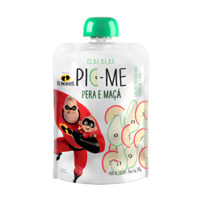 <p>Pronto para a diversão! O <strong>Pouch Disney Incríveis Pera e Maçã Pic-me 90g</strong>, traz os personagens do filme Os Incríveis, maior franquia da Pixar Brasil, para a lancheira do seu filho! O melhor é que é só fruta, sem conservantes, corantes ou qualquer outro aditivo químico ou artificial! Prático e seguro para o consumo infantil, o purê de frutas pode ser consumido a qualquer momento sem necessidade de refrigeração. Nutrição para o seu filho e tranquilidade para você.</p> Sobre os ingredientes: <p>Purê de pera, purê de maçã e limão.; Não contém Glúten.</p> Alergênicos: Não contém alergênicos. <p>A Pic-Me acredita e sabe que ter uma alimentação saudável é uma escolha, mas também um grande desafio. Por isso, desenvolvemos um Purê vegano com frutas selecionadas, sem glúten, adição de açúcar, corantes e conservantes. Sem deixar de preservar o sabor, seus principais nutrientes, vitaminas e minerais.</p> Sugestão de consumo: <p>Pode ser consumido a qualquer momento sem necessidade de refrigeração.</p> Motivos para escolher o produto: <ul> <li> <p>Sem glúten</p> </li> <li> <p>Sem conservantes, corantes</p> </li> <li> <p>Sem alergênicos</p> </li> </ul> Sobre a marca: <p>A <strong>Pic-me</strong> possui um linha de alimentos práticos, gostosos e com ingredientes 100% naturais, oferece mais de 30 opções que seguem o mesmo pensamento e respeitam a filosofia Clean Label, movimento puxado pelos consumidores para ter rótulos cada vez mais claros e limpos, combinando ingredientes mais naturais e menos artificiais com simplicidade.</p>