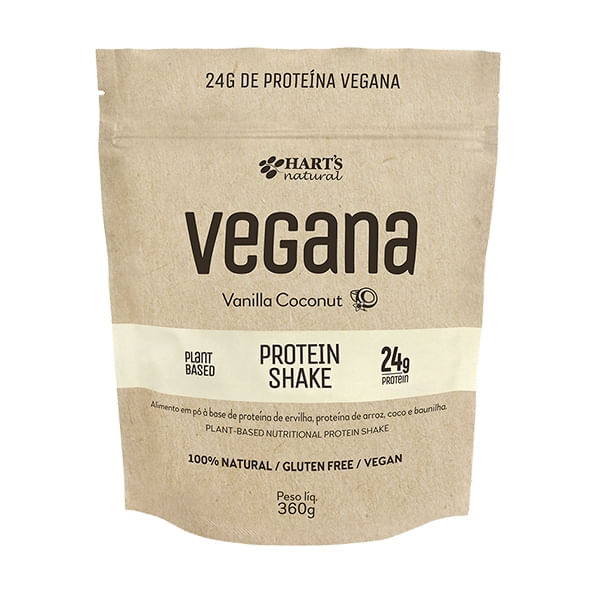 A Pouch Vegana Shake Vanilla, da Hart's Natural, é um suplemento de proteína vegana a base de proteína de ervilha e de arroz, com leite de coco em pó e fava de baunilha, adoçado com estevia. Fornece 24g de proteínas altamente digeríveis e não inflamatórias, na porção do produto. Opção prática ideal para veganos ou para pessoas que buscam uma fonte alternativa de proteína limpa, sustentável e de excelente qualidade.