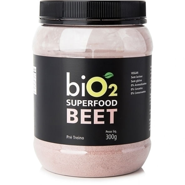 Informações técnicas do produto:<br>_x000D_ Superfoood Beet, Bio2 é um pó para preparo de bebidas, feito com beterraba em pó, guaraná em pó e maca peruana orgânica. É um produto livre de aromatizantes, corantes e conservantes, sem lactose e sem glúten, podendo ser consumido por intolerantes a lactose, pessoas com doença celíaca e por veganos.<br>_x000D_ <br>_x000D_ Recomendação de consumo:<br>_x000D_ Misture 3 medidas (30g) com água, sucos, shakes, smoothies ou crie sua receita. Antes ou durante atividade física.<br>_x000D_ <br>_x000D_ Informações sobre alergênicos:<br>_x000D_ Pode conter soja, castanhas do Pará, castanha de caju, amêndoa, avelã, amendoim, macadâmia e pistache.<br>_x000D_ <br>_x000D_ Por que escolher esse produto?:<br>_x000D_ Sem glúten<br>_x000D_ Para veganos<br>_x000D_ Com beterraba em pó<br>_x000D_ Livre de aromatizantesartificiais<br>_x000D_ Sem lactose<br>_x000D_ Livre de corantes e conservantes