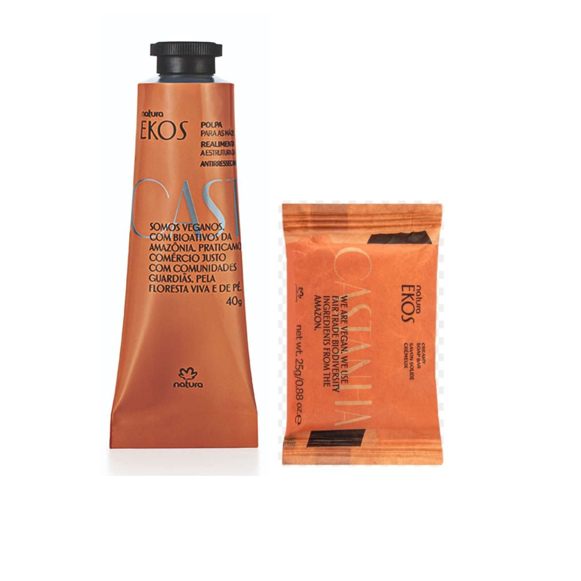 Presente Natura Ekos Castanha.<br /> <br /> Aproveite esse maravilhoso encontro com a Amazônia que só a Natura Ekos Castanha pode te proporcionar!<br /> <br /> Presenteie com o melhor, presenteie com Natura Ekos!<br /> <br /> O kit contém:<br /> <br /> 1 - Creme Para Mãos Natura Ekos Castanha 40g;<br /> <br /> 1 - Sabonete Natura Ekos Castanha 50g.<br /> <br />