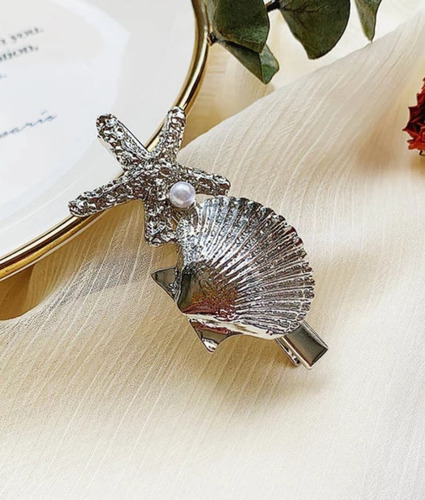 Presilha Grampo Bico de Pato Estrela Concha Metal.<br /> <br /> Ótimo acessório para complementar suas produções.<br /> <br /> Medidas aprox: 6,2x3 cm.
